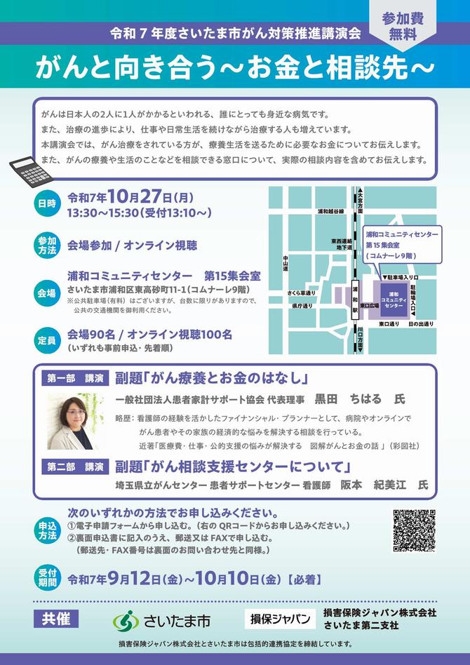 令和7年度さいたま市がん対策推進講演会「がんと向き合う~お金と相談先~」サイトより
